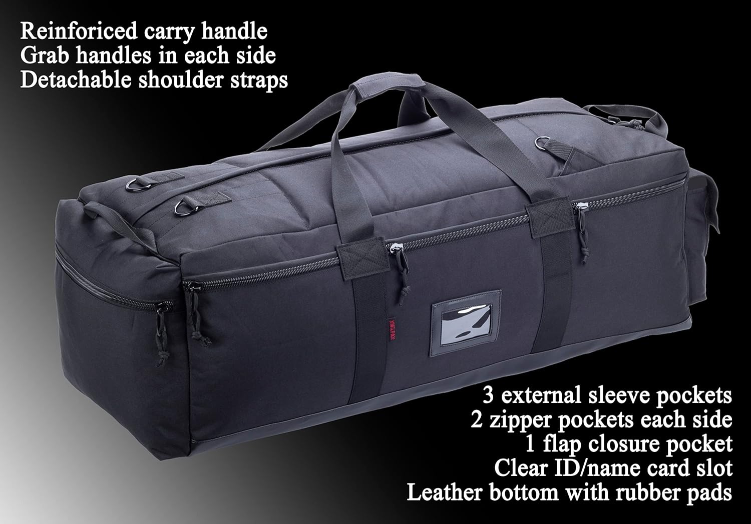 - This extra large military duffle bag is constructed of rugged 600D polyester fabric with #10 heavy duty zipper and quality buckles in whole bag for using in tough condition.Ideal as army duffel bag, deployment bag, tactical gear load out bag, cargo bag, travel duffel bag, base camping bag, etc.